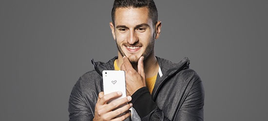 Un futbolista que destaca por sus asistencias presenta un smartphone.