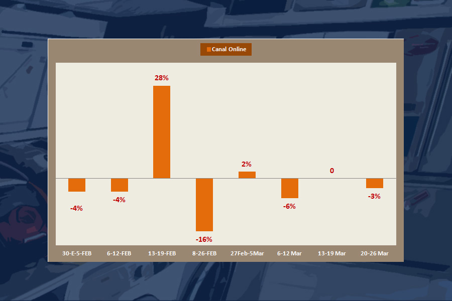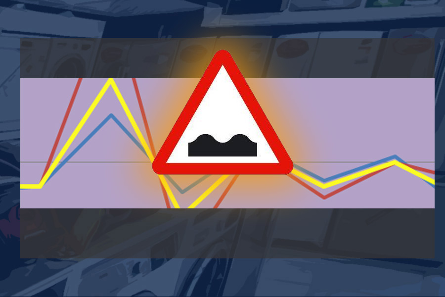 Aunque, sí, es cierto: la línea de variaciones semanales es una pequeña montaña rusa dentada, si bien no de gran amplitud, a la luz de los últimos datos de GfK conocidos en su «sales-track», que llegan hasta la semana cerrada el 26 de marzo. Podríamos decir que es como circular por una carretera con badenes.